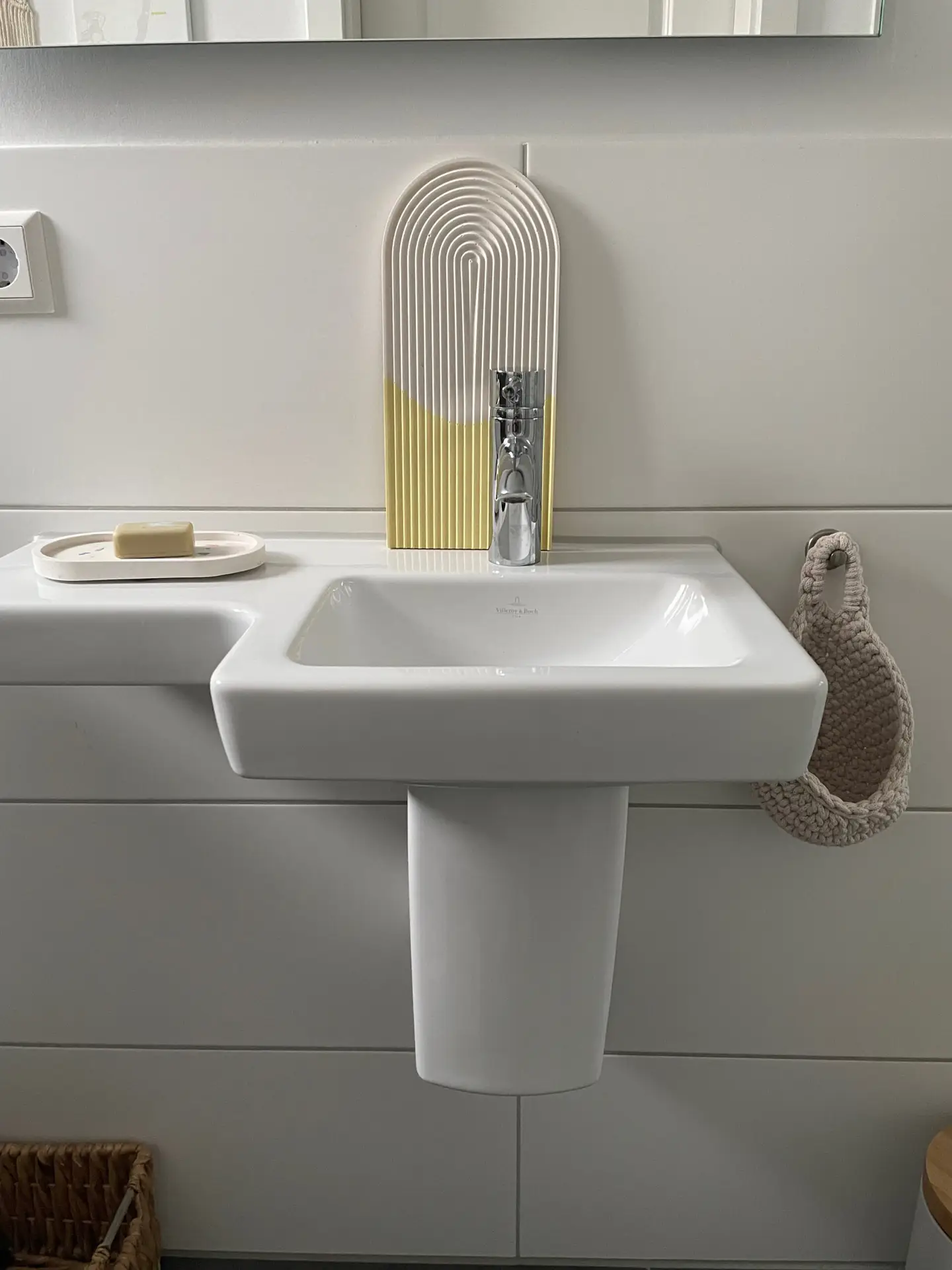 Du kannst es beispielsweise perfekt als Ablage für deinen Lieblingsschmuck oder dein Parfüm nutzen. Auch Kerzenhalter oder kleine Vasen mit Trockenblumen lassen sich wirkungsvoll auf dem Tablett arrangieren. Du magst es gerne minimalistisch? Dann dekoriere das Betontablett doch einfach mal hochkant an die Wand gelehnt auf deinem Sideboard.
